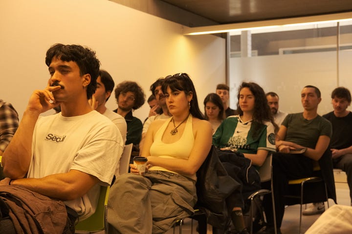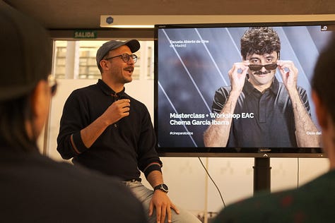 En la segunda parte, aprovechando la experiencia de Chema como consultor de guión y tutor de proyectos, hemos organizado una sala de guionistas para que alumnos e invitados puedan verlo trabajando y aprender cómo funciona la mente de un creador.