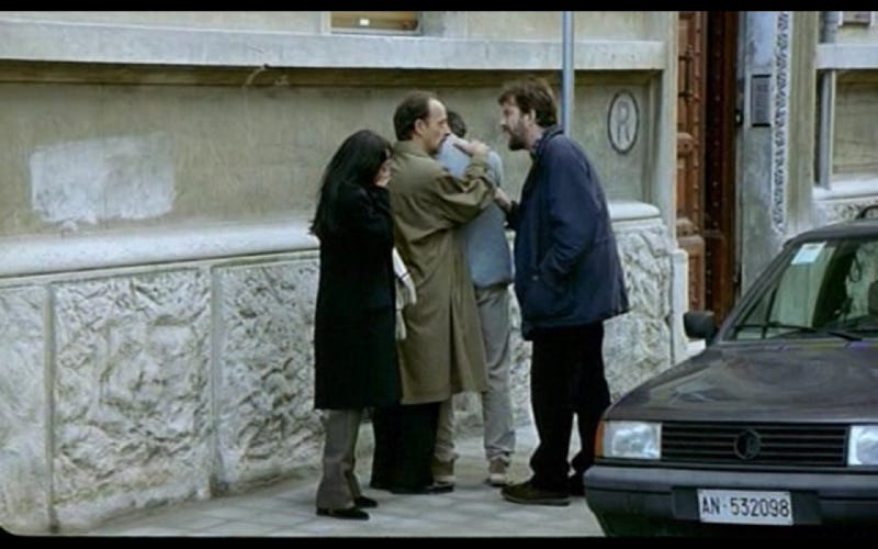 Giovanni aparca. En la otra acera lo esperan un amigo de su hijo y su padre (los hemos visto antes a los dos). Le dicen: “Su hijo tuvo un accidente en el mar”. “¿Cómo está Andrea?”, pregunta Giovanni al padre y al niño.