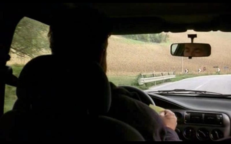 Estamos en el auto con Giovanni, regresando, y la cosa se pone un poco perversa. Por un momento la música es ligera y alegre. ¡Suena una flauta! O un clarinete. Y vemos otra vez a Giovanni conduciendo con el mar de fondo. En ese momento la música se vuelve melancólica. Suenan un violín y un piano.