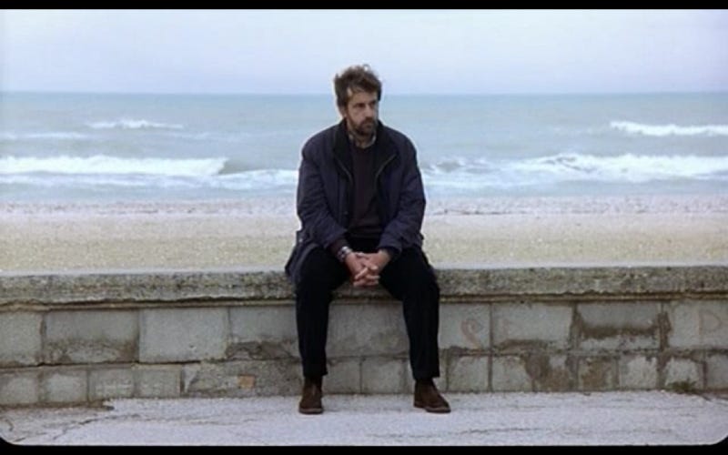 Giovanni toma un descanso de espaldas al mar, que está agitado. El sonido del mar ahora es el protagonista. Así Llegamos a los 33 minutos y vemos la primera llamada que nadie responde. La casa está vacía. Giovanni deja un mensaje en el contestador desde una cabina telefónica que también tiene al mar de fondo. “Estoy regresando”.