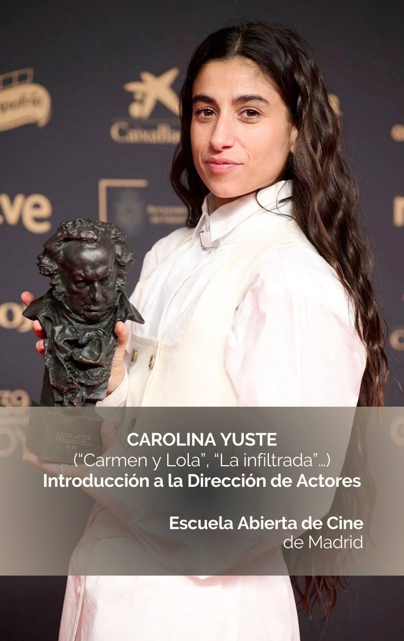 Nuestra Masterclass de ABRIL tendrá como ponente a Carolina Yuste, actriz de cine y teatro, flamante ganadora del Goya, con una trayectoria destacada trabajando con algunos de los mejores directores del panorama actual.